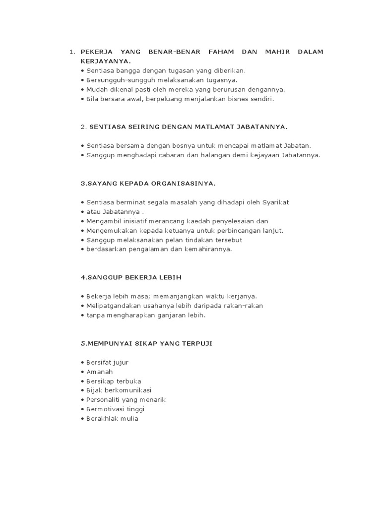 Kerja menjadi hobi baginya lazimnya dia datang awal dan balik lambat. Sebagai rujukan buat pelajar di bawah dikongsikan. 9 ciri pekerja cemerlang docx.